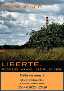 Dimanche 12 avril 2026 à 10h30, 4 rue Villars, 13100 Aix-en-Provence : Printemps des poètes.