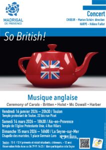 Samedi 14 mars 2026 à 18h30, 4, rue Villars, Aix en Provence, par le Madrigal de Provence.