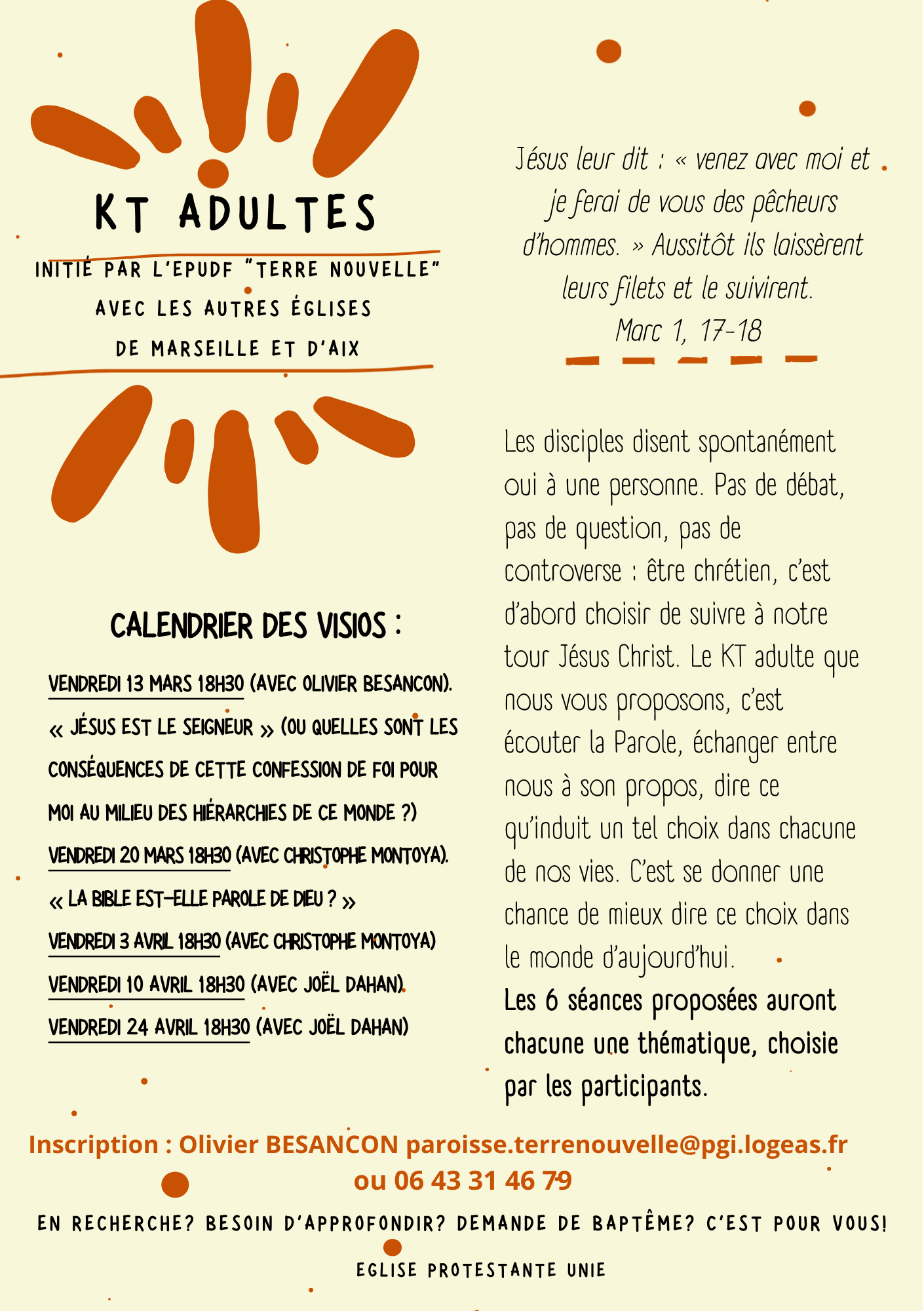 Inscription : Olivier BESANCON paroisse.terrenouvelle@pgi.logeas.fr ou 06 43 31 46 79